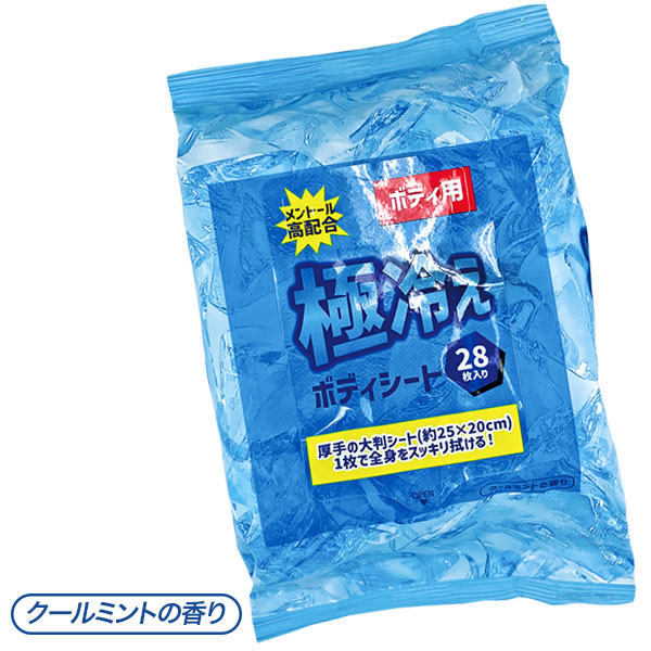 【主な仕様】1ヶ1セット|28枚入|厚手の大判シート|ボディ用|拭き取り用化粧水|クールミントの香り|材質:不織布、水、エタノール、メントール、香料