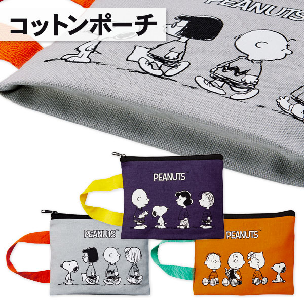 【商品詳細】毎日持ち歩きたくなる!スヌーピーのシンプルかわいいコットンポーチ。かわいいカラーのループハンドル付きで持ち運びにも便利♪おしゃれのアクセントにも◎!
