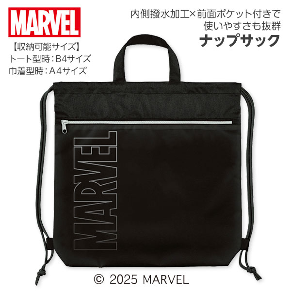 【商品詳細】シンプルなデザインに大きなMARVELロゴがかっこいい!通学やお出かけ、スポーツなどにぴったりなナップサックです!