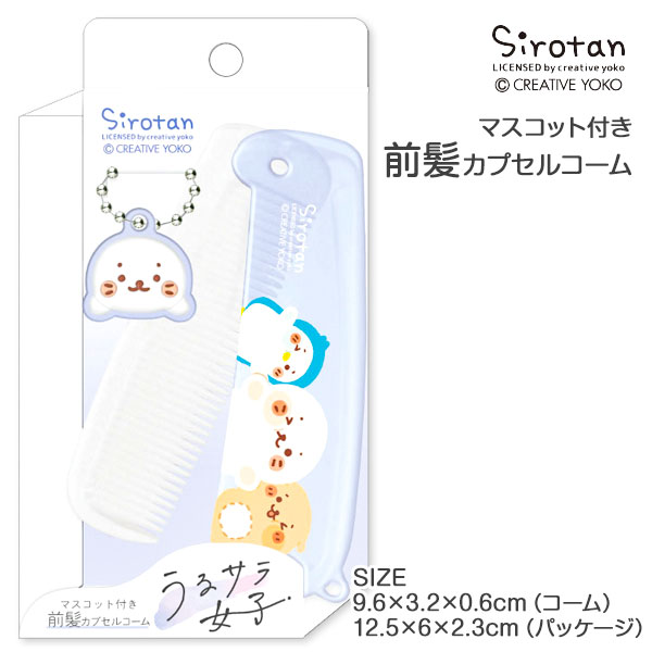 【商品詳細】かわいい「しろたん」と仲間たちがデザインされた前髪用コーム♪ふんわりキュートなしろたんマスコット付きで、使うたびに癒されます☆