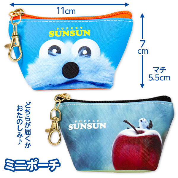【商品詳細】人気キャラクター「パペットスンスン」から、コロンとかわいいミニポーチが登場!リップクリームやアクセサリー、小銭などの小物を入れるのにぴったりなサイズ感です。