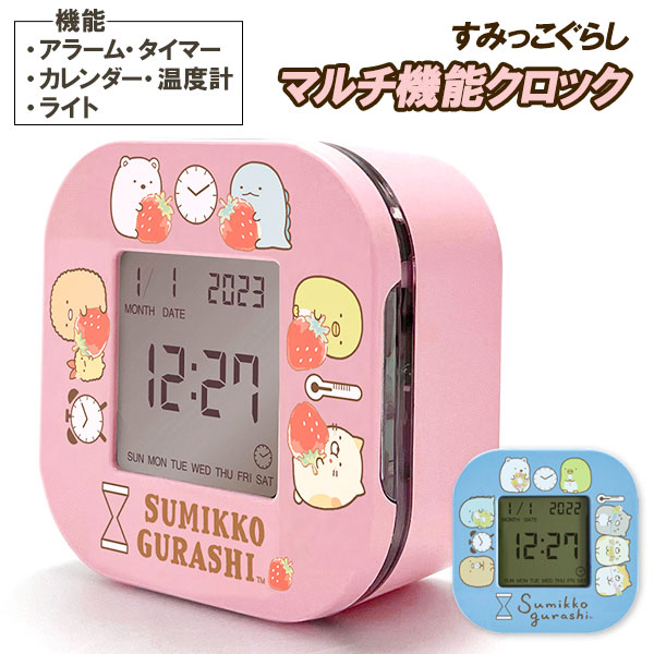 【商品詳細】すみっコぐらしのキャラクターたちがデザインされた、見た目も楽しいマルチ機能付きデジタル時計!本体を回転させることで画面が切り替わるユニークな構造になっています。