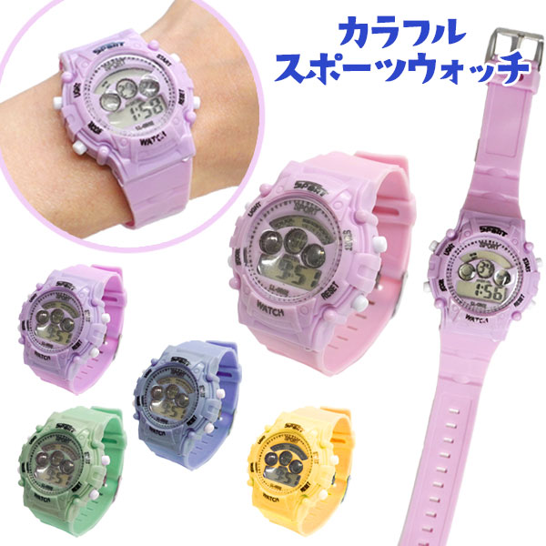 【関連キーワード】カラフル パステル 大人 子供 スポーツ 腕時計 ウォッチ ファッション デジタル時計 時計 雑貨 景品 プレゼント ギフト 誕生日 新生活 新入学 { 祭り 運動会 文化祭 新学期 入学準備 入園準備 卒業祝い 記念品 かわいい かっこいい お祝い }