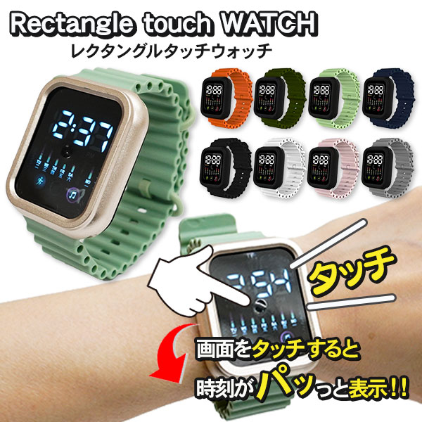 【商品詳細】画面中央を軽くタッチするだけで、時刻がパッと表示されるスタイリッシュなデジタルウォッチです♪シンプルで見やすいディスプレイと、トレンドのスクエアフェイスが魅力。男女兼用で、プレゼントにもおすすめです☆
