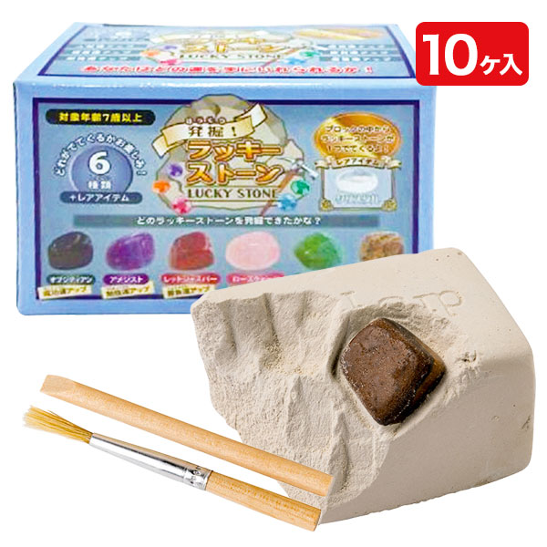 【主な仕様】10ヶ1セット|セット内容:ラッキーストーン、発掘棒、ブラシ|対象年齢7歳以上|6種類+レアアイテム