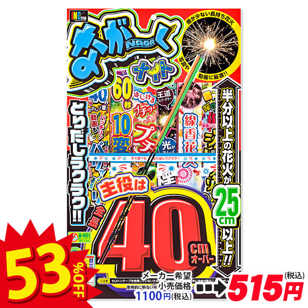 【商品詳細】半分以上の花火が25cm以上の火薬の長さ!主役は40cm以上の超ロングなスパーク花火でなが〜く遊べる花火セットです☆
