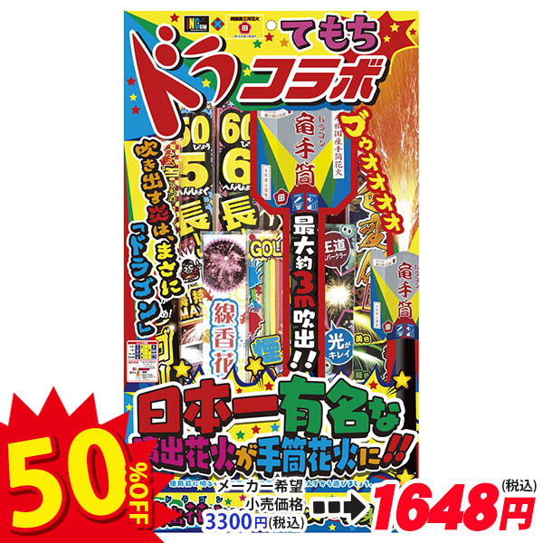 【主な仕様】1ヶ1セット|10種類27本|ススキ(ノーマル)3本、ススキ(ロング)6本、スパーク13本、吹出2本、線香3本|ドラゴンの手筒版花火をメインとした手持花火セット|火薬量:約80g|重量:約335g