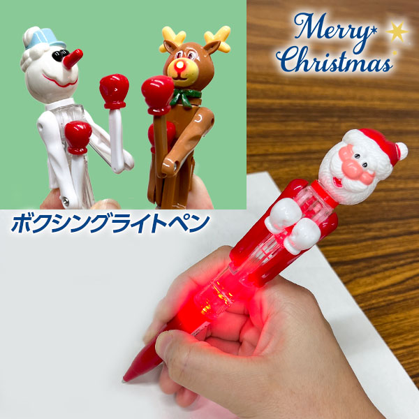 【商品詳細】サンタ、スノーマン、トナカイが光るよ☆書いて遊べる、とっても楽しいボールペンです♪