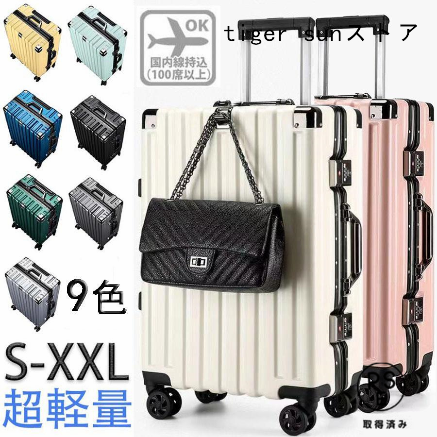 スーツケース キャリーケース 機内持ち込み S M L 2泊3日 アルミフレーム おしゃれ かわいいハード フック付き 軽量 大容量 耐衝撃 静音 海外出張 修学旅行