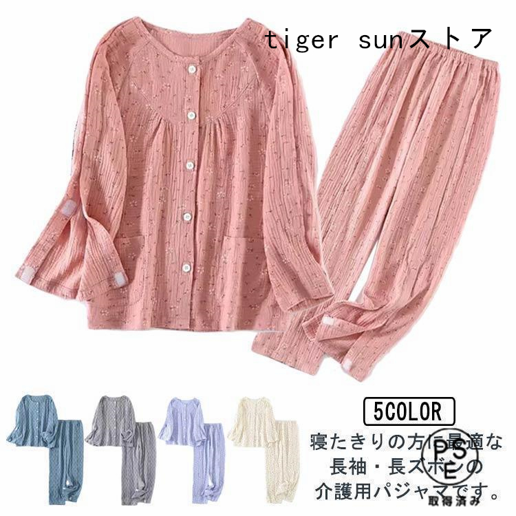 介護パジャマ メンズ レディース 何か所もオープン マジックテープ 入院服 長袖 介護服 寝たきり 点滴 ガーゼ フルオープン 骨折 病院用 入院 ゆ