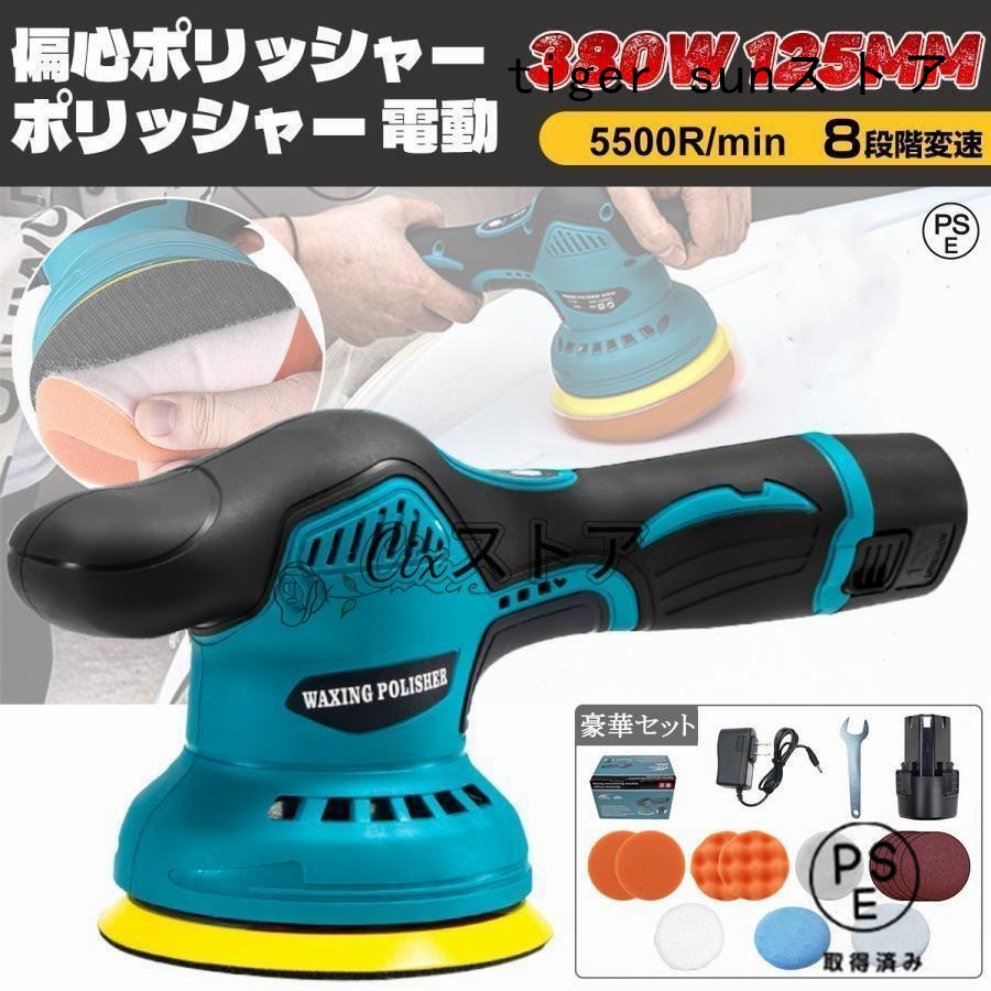 ポリッシャー バフ 125mm 電動 充電式 8段階変速 車 研磨 サンドペーパー 大容量バッテリ一 小型 車磨き ワックス 洗車 傷消し ホイール磨き
