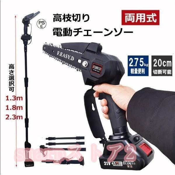 高枝切り 電動チェーンソー バッテリー互換 コードレス 角度調節可能 20cm切断可能 両用式 軽量 女性用 着脱式ポール 高枝切りバサミ 枝切ばさみ