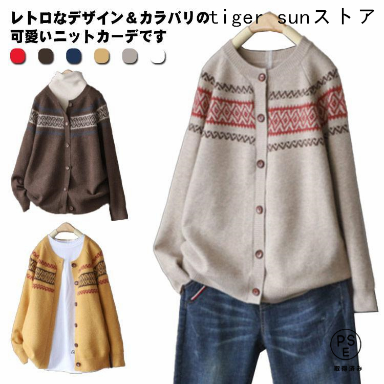 ニット カーディガン 長袖 レディース レトロ ニットカーディガン ノルディック柄 求心柄 ニット トップス ゆったり 大きいサイズ 前開き