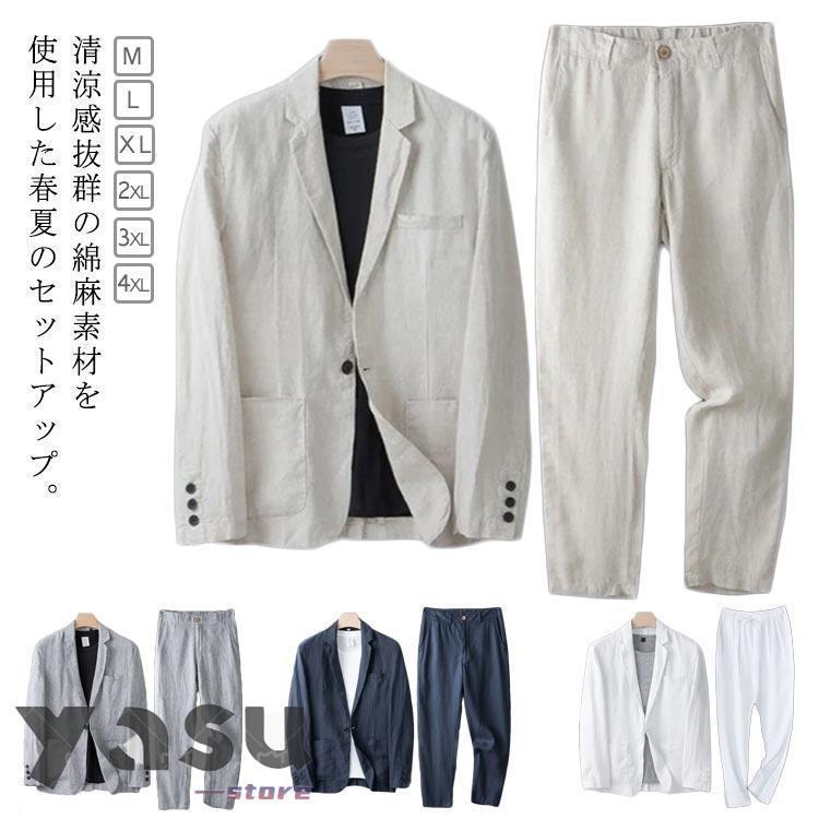 夏用 セットアップ セットアップ メンズ サマージャケット 上下セット 綿麻 麻 テーラードジャケット 春 カジュアルスーツ メンズファッション