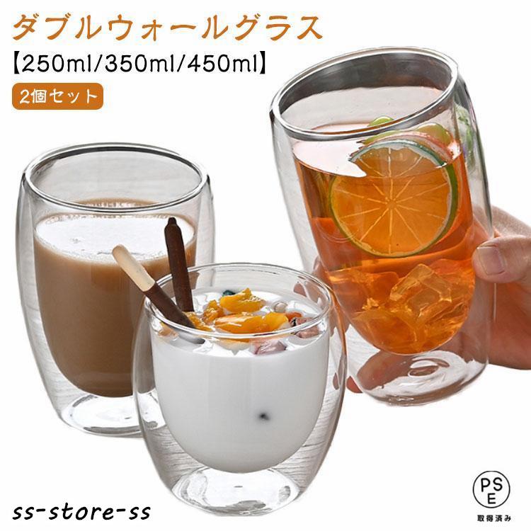 【2個セット】ダブルウォールグラス コップ 250ml/350ml/450ml 耐熱ガラス おしゃれ 保温 誕生日 二重グラス タンブラー グラス 二