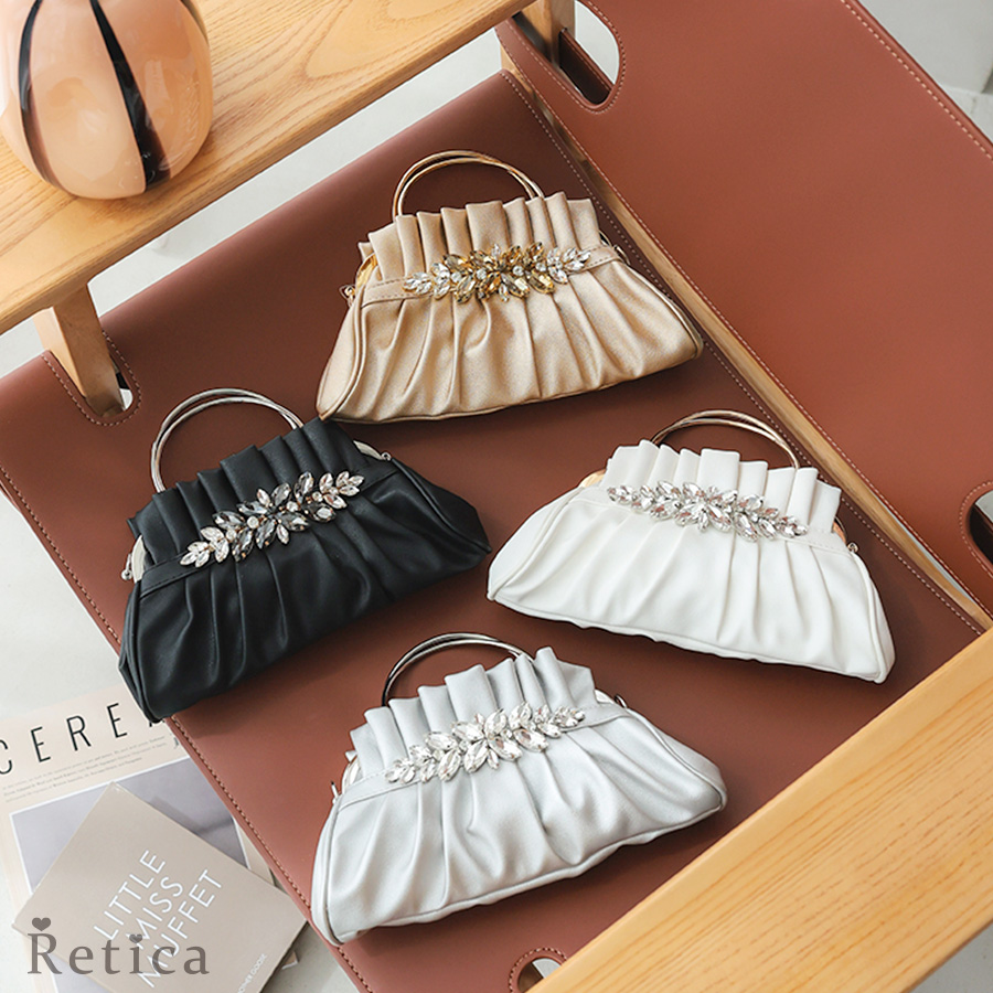 パーティーバッグ 結婚式 フラワー モチーフ カットビジュープリーツがま口 2wayクラッチ ミニパーティー バッグ