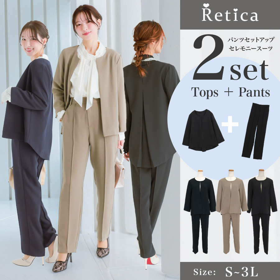 セレモニースーツ パンツ 卒業式 服装 母 服装 セットアップ ノーカラー ジャケット スタイル おしゃれ 入学式 ママ 入園式 卒園式 大きいサイズ 30代 40代