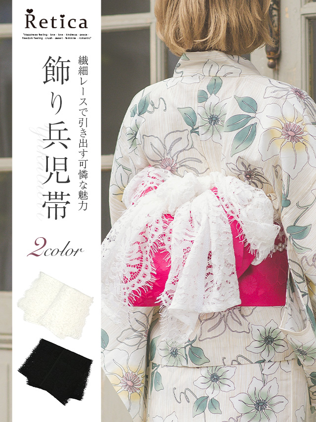 ゆかた 激安 レース 兵児帯 白 黒 帯 刺繍 花柄 ホワイト ブラック 浴衣 着物 振袖 レディース 大人 浴衣小物 成人式 卒業式 七五三