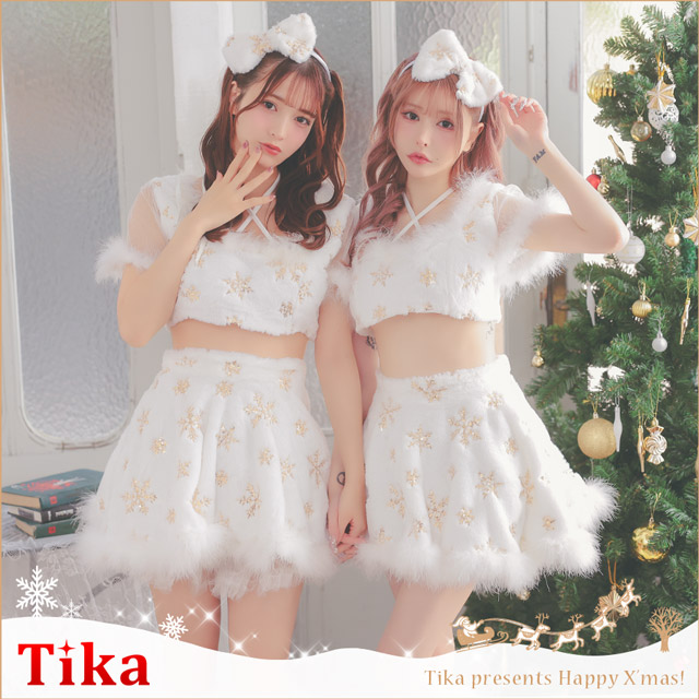 サンタコスプレ サンタコス 3点set クロスネックリボン へそ出し セパレート フレアスカート ふわもこ スパンコール スノウサンタコスプレドレス