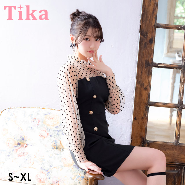 キャバ ドレス キャバドレス ミニ 安い ハイネック フリル ドット柄 シースル フレア キャバワンピース