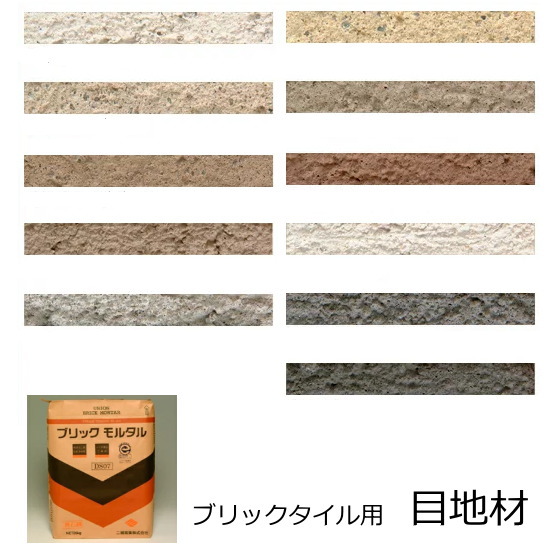 ブリックタイル用 目地材 壁・床用です。白・黒・黄・茶・グレー・黒等の色が選択可能です。レンガ積みにも使用出来、レンガ建築をを美しく仕上げます。ブリックモルタル ブリックメヂ メジ ブリックメジ