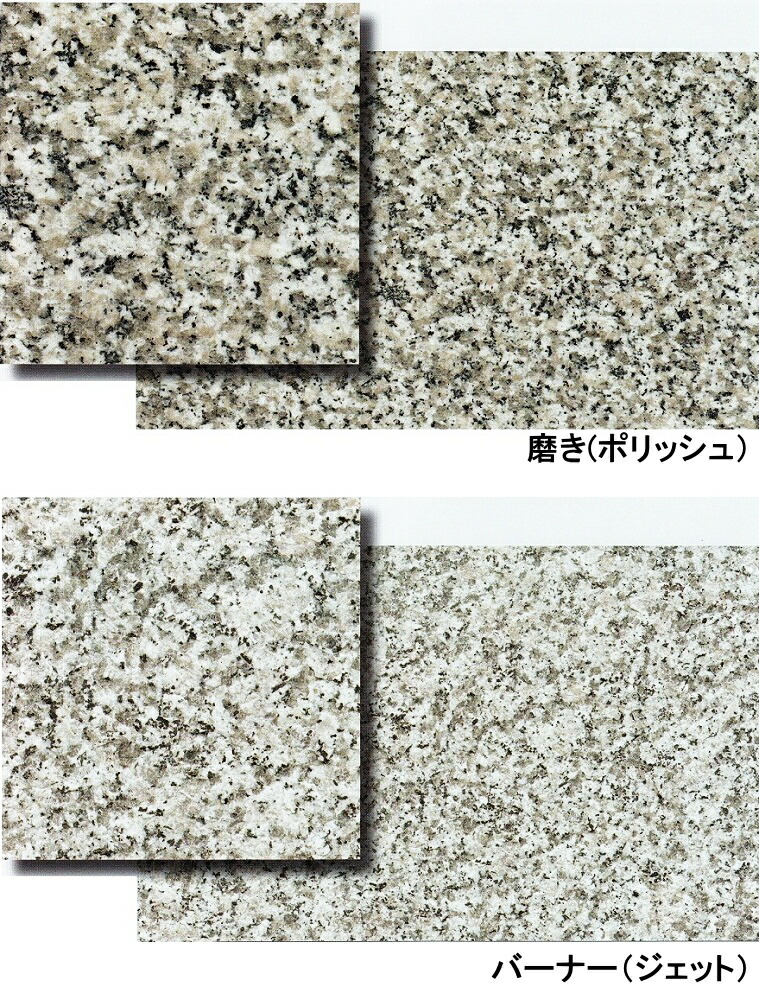 御影石 G623 白 400角(40cm)の説明壁・内床用(磨き ツルツル)/外・内床・壁用(ジェット ザラザラ)
