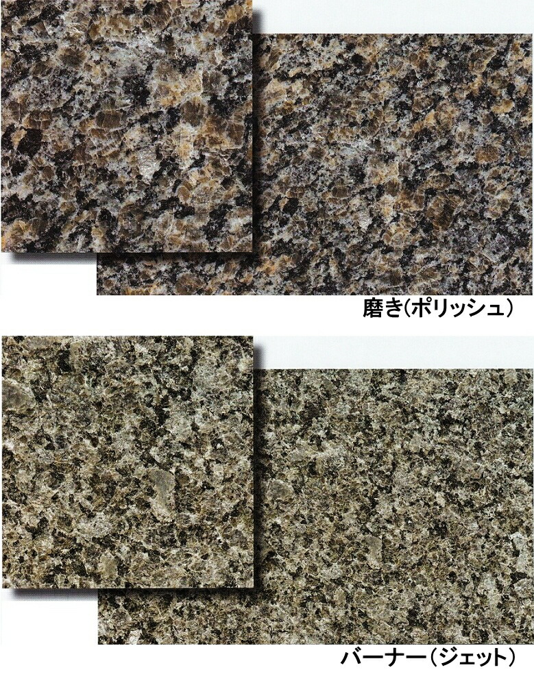御影石 カレドニア 茶色 400角(40cm)の説明壁・内床用(磨き ツルツル)/外・内床・壁用(ジェット ザラザラ)