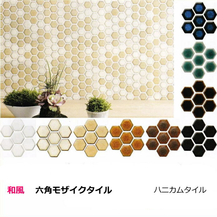 六角形 モザイクタイル シート 磁器 6角 ヘキサゴンタイル 和風 ハチの巣 亀甲紋 六角 ハニカムタイル アンテイーク レトロモダン風 キッチン カウンター お風呂 浴室 浴槽 床 壁 洗面台 トイレ DIY おしゃれ リフォーム 耐熱 耐火 美濃焼 インテリア