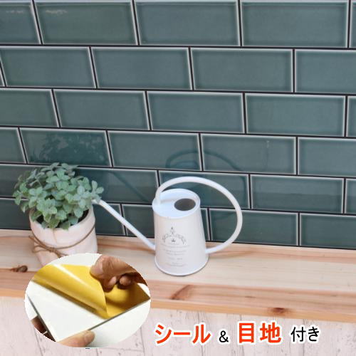 タイルシール サブウェイタイル ベント シール 長方形 1枚 販売 ディープグリーン 緑色 黒目地 おしゃれ アンティーク レトロモダン 目地付 キッチン カウンター 洗面所 壁 DIY リフォーム 賃貸用 簡単 剥がせる 貼れる 美濃焼 耐熱 防水 磁器質