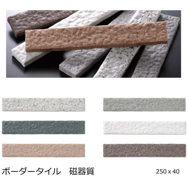 ボーダー タイル 250x40 御影石風 岩面 外壁 壁用 レンガ 鉄平 補修 修理 リフォーム DIY モダン 和風 白 ベージュ 黒 茶 門扉 玄関 塀 門扉 柱 塀 エントランス 日本製 美濃焼タイル