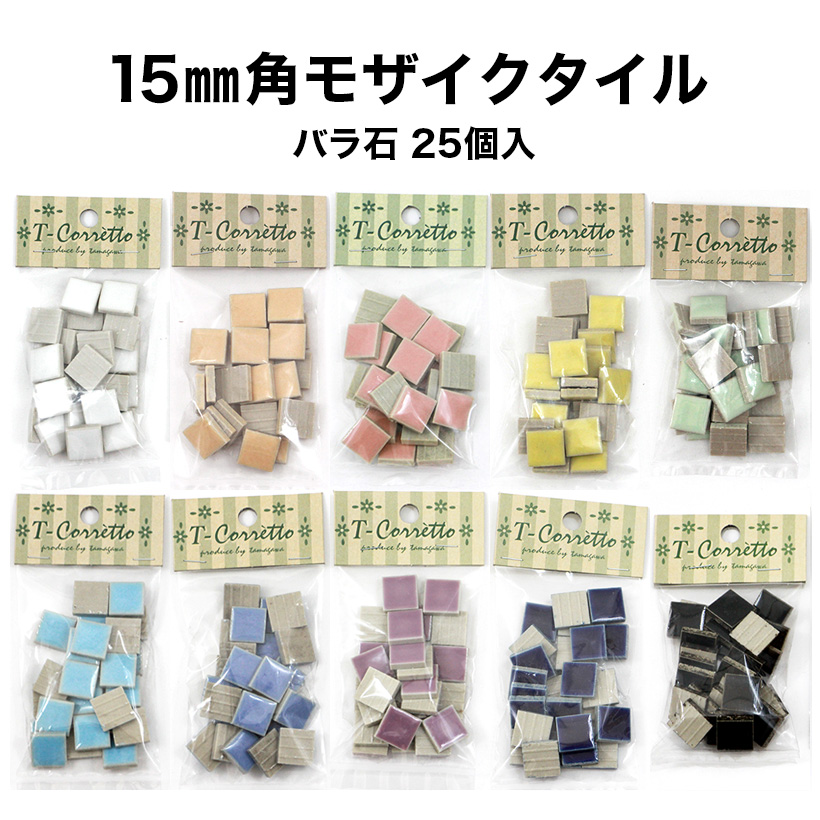 モザイクタイル 15mm角 レギュラーカラー 小袋25個入 全10色 バラ石