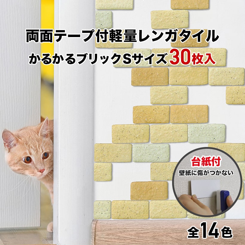 壁紙シール 軽量レンガ タイル かるかるブリック Sサイズ(ミニサイズ) 30枚入両面テープ付