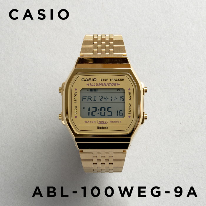カシオABL-100WEは、1980年代の名機A168WAのデザインを継承しつつ、現代的な機能を加えたレトロモダンなデジタルウォッチです。ヘアライン加工が施された多列構造のメタルバンドは、イルミネーションのように光を反射。鏡面仕上げのメッキケースと組み合わさることで、高級感と懐かしさを演出しています。スマートフォンとのBluetooth連携により、定期的に時刻を自動修正。右下ボタンによる手動修正も可能なため、常に正確な時刻を維持できます。歩数計は日々の歩数を記録するだけでなく、目標設定や達成グラフ表示にも対応。一定時間動かないと通知してくれる機能もあり、健康管理をさりげなく後押しします。液晶上部のグラフィックバーは、モードに応じて表示が変化するデザイン上のアクセントです。曜日はドットマトリクスで表示され、視認性と情報量を両立しています。残照機能付きLEDライトで夜間の視認性も確保。夜間に静止状態が続くと画面を自動オフにするパワーセービング機能も搭載し、バッテリー保護も配慮されています。レトロな魅力に便利さを添えたABL-100WEは、日々の装いにも自然になじみ、あなたの毎日を前向きにしてくれる一本です。 | |