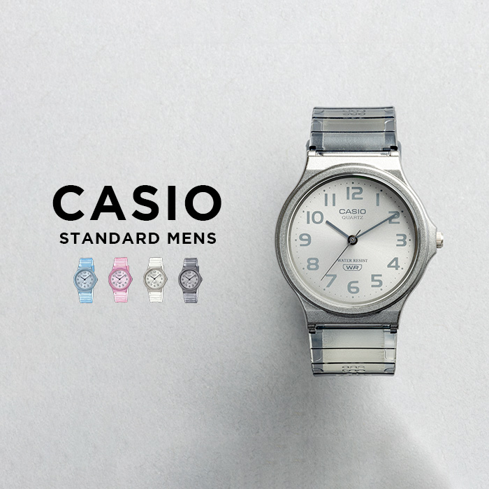 ロングセラーモデルMQ-24のカラフルなスケルトンカラータイプです。メタリック塗装ケースと旭光文字板を採用し、バンドとワントーンで仕上げました。軽く腕にフィットする3針タイプで日常生活用防水機能も備えています。 | |