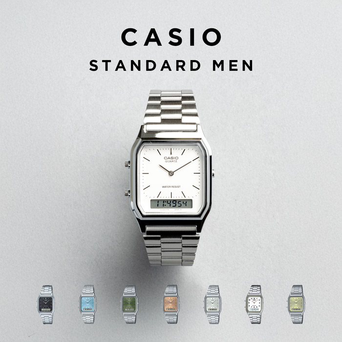 | ■ カラー ■ AQ-230A-1D ケース:シルバー 文字盤:ブラック ベルト:シルバー AQ-230A-2A1 ケース:シルバー 文字盤:ブルー ベルト:シルバー AQ-230A-3A ケース:シルバー 文字盤:カーキ ベルト:シルバー AQ-230A-4A ケース:シルバー 文字盤:オレンジ ベルト:シルバー AQ-230A-7A ケース:シルバー 文字盤:シルバー ベルト:シルバー AQ-230A-7B ケース:シルバー 文字盤:ホワイト ベルト:シルバー AQ-230A-7D ケース:シルバー 文字盤:ホワイト ベルト:シルバー AQ-230A-9A ケース:シルバー 文字盤:ゴールド ベルト:シルバー →他のカラーはコチラ | |