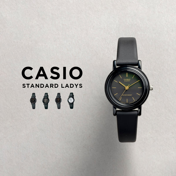 カシオLQ-139は、ブラックのラウンドケースが可愛らしい、スモールサイズの腕時計です。ケースには深みのある光沢処理が施されているため、樹脂製ながらも品のある佇まいとなっています。スムースレザー風の樹脂ベルトは、両サイドが丸く滑らかに成型されているため、見た目にも軟らかく、肌触りも滑らかです。分針と秒針が目盛の先までキッチリ届いており、文字盤のデザインもバランスよく整っています。 | |