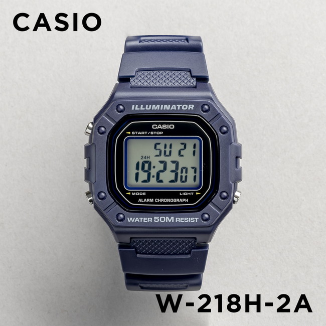 カシオW-218Hは、極太の7セグメントディスプレイで時刻を表示する、視認性の高い腕時計です。各セグメントが極太に設計されていることに加え、背景との明度差も極めて大きいため、時刻がくっきり明瞭に表示されます。オレンジ色に光るライトの輝度も高く、夜間の視認性も万全です。G-SHOCKを想起させるデザインも特徴の一つで、かつて販売されていたDW-5300を彷彿とさせる形状をしています.ベルトもG-SHOCKのそれによく似たデザインですが、モザイクのような凹凸パターンが刻まれているところが、この腕時計ならではの持ち味です。 | |