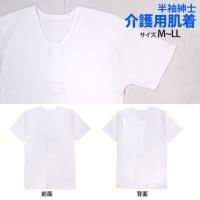介護用肌着 半袖 シャツ メンズ 男性 下着 綿100% 前開き ワンタッチ マジックテープ留め 厚手 無地 紳士肌着 インナー 大人 M L LL