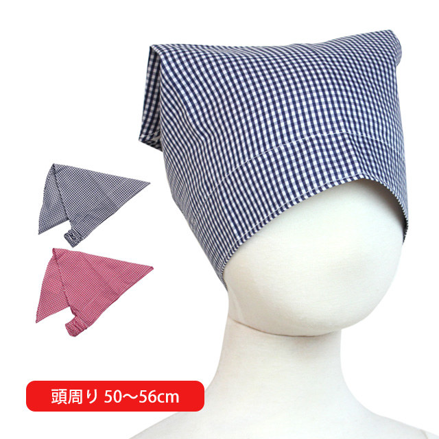 幼稚園・保育園・小学校などでいろいろ活躍する活躍するギンガムチェック柄の給食着 ゴム付き三角巾です