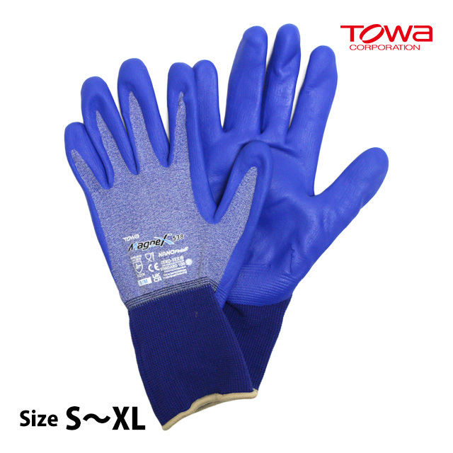 作業 手袋 すべり止め 背抜き 手袋 抗菌防臭 ニトリルゴム マグネックス S M L XL 538 ブルー 東和コーポレーション TOWA