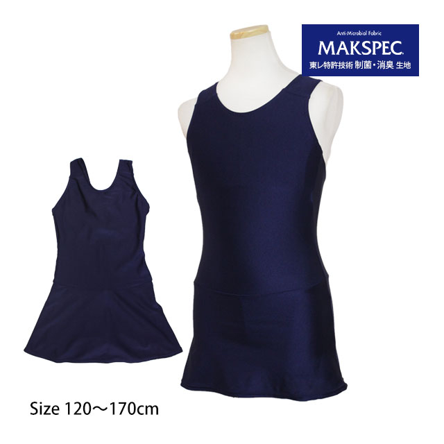 スクール水着 女子 女の子 スカート&スパッツ ワンピース水着 体型カバー 学校 水着 子供 紺 無地 抗菌 防臭