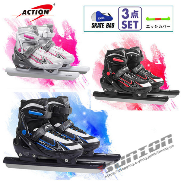 スピードスケート靴 スケート 靴 フィギュアスケート フィギュア シューズ 固定式 エッジカバー付き 研磨済み サイズ調整可能 ギフト プレゼント