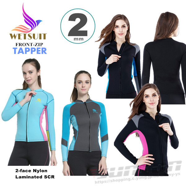 ウェットスーツ タッパー レディース 2mm サーフィン フロントジップ ネオプレーン ダイビング マリンスポーツ