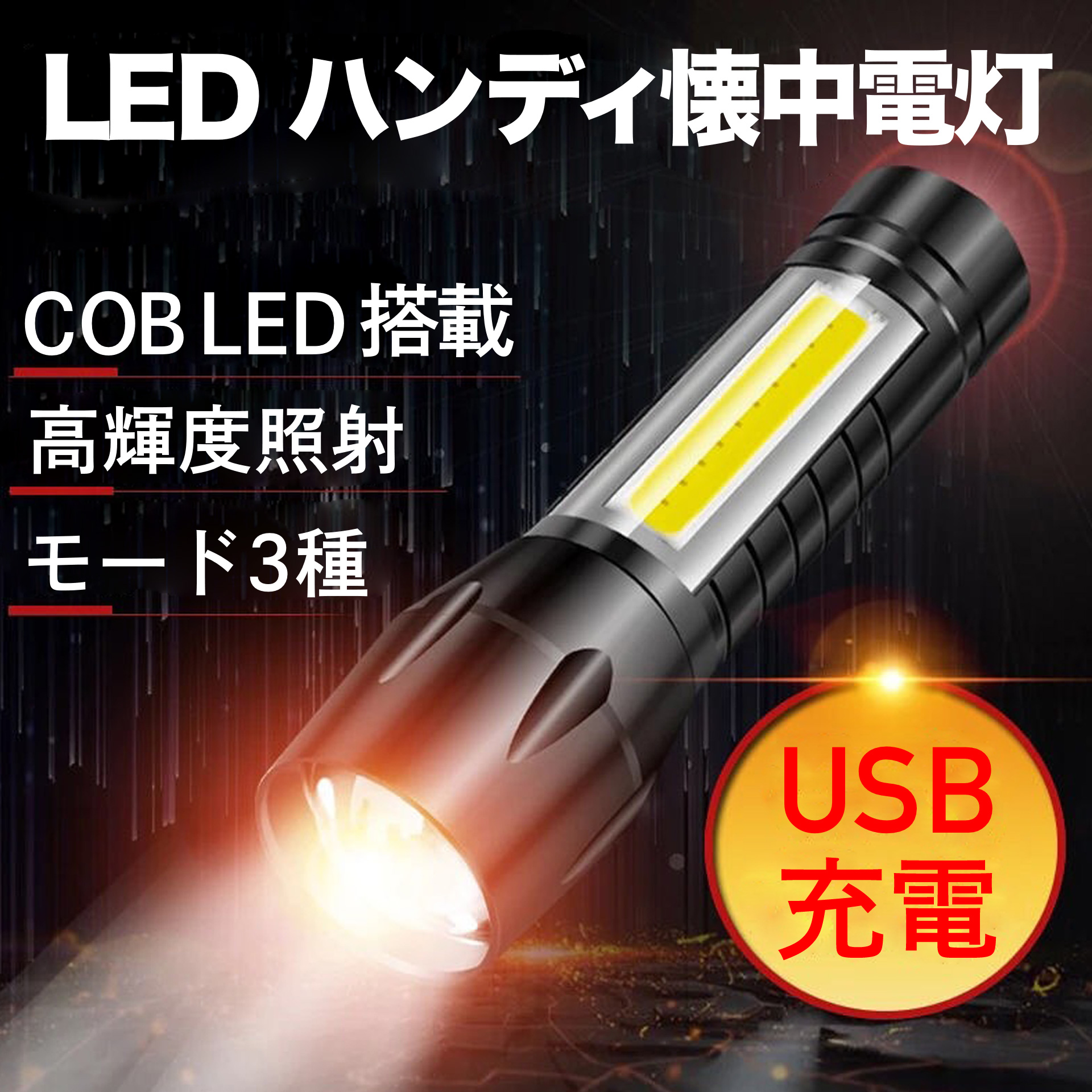 ハンディライト LED COB 超強力 充電式 USB 懐中電灯 ランタン 作業用 軽量