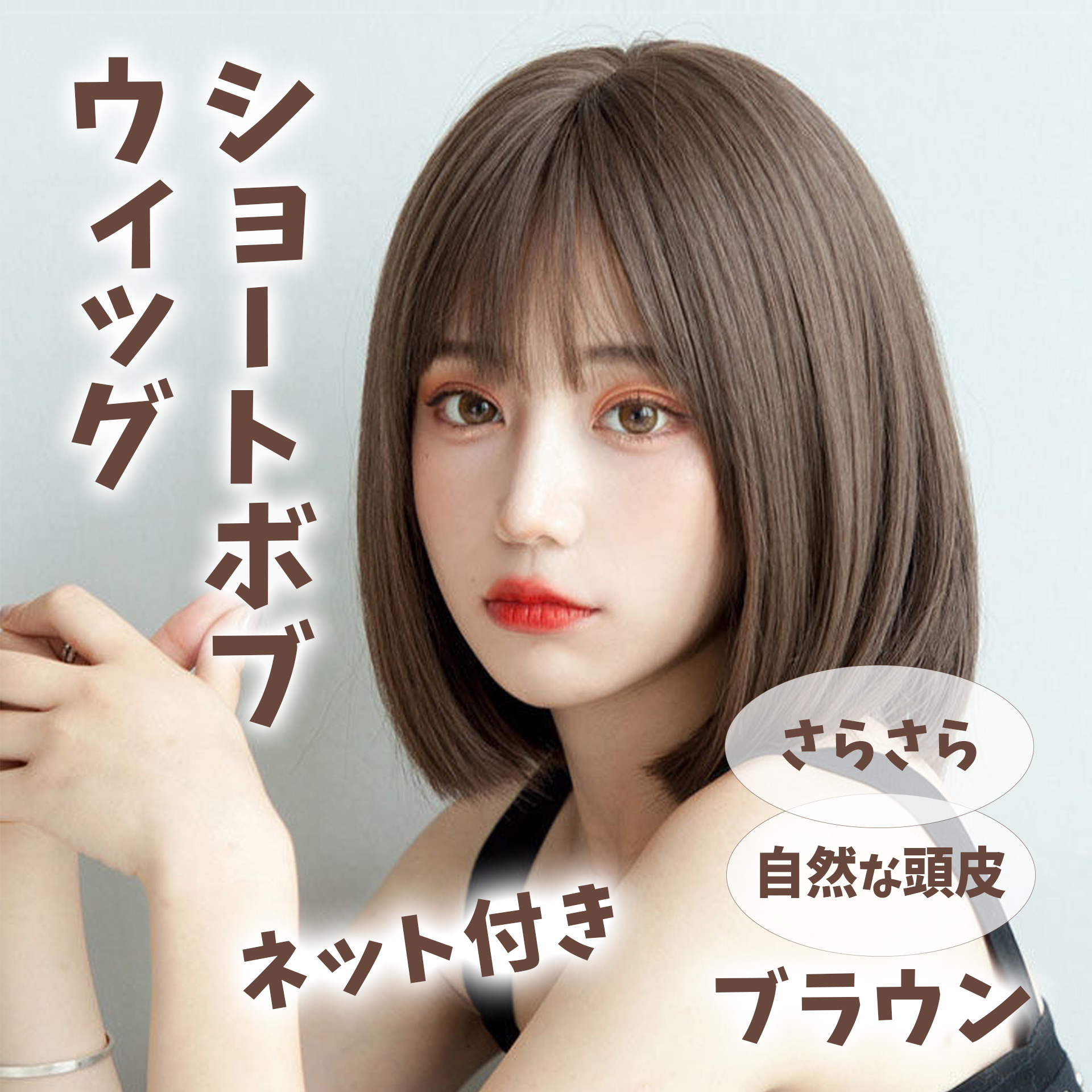 フルウィッグ ボブ ショート ブラウン 茶色 ウィッグ ネット付 医療用 かつら