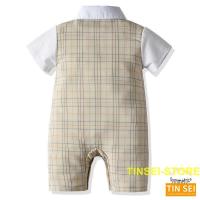 ベビータキシード 普段着用 新生児 幼児 プレゼント 連体服 カバーオール ロンパース チェック柄 グレー 半袖 セレモニースーツセット 記念品 礼装 正装 保育園
