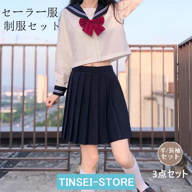 セーラー服 JK 制服 3点 学生服 長袖 半袖 コスチューム セット 女の子 レディース 学園祭 高校生