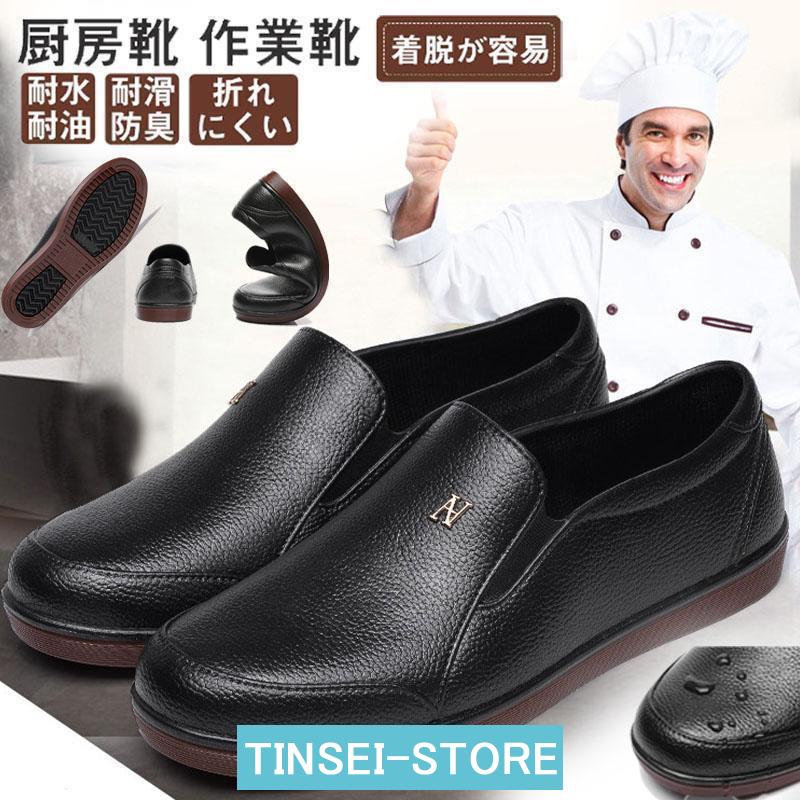 コックシューズ メンズ ビジネスシューズ ローファー キッチンシューズ 防水 シューズ 厨房 作業靴 キッチン 調理靴 雨靴 耐油 耐滑 レストラン 業務用