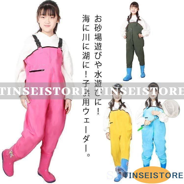ウェーダー子供用チェストハイウェーダー胴長オーバーオールキッズ用レインウェアプレイウェアお砂場着女の子男の子ポッケト完全防水
