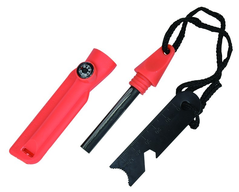 いざという時に役立つホイッスル、コンパス、7ミリレンチ、50・60mmスケールが付いています。